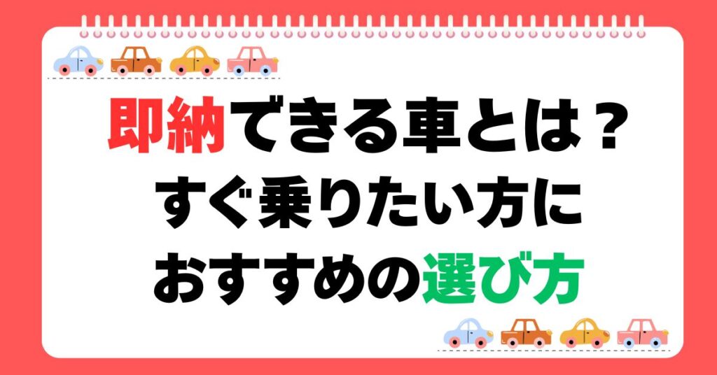 この記事では、即納できる車の特徴や種類、メリット・デメリット、選び方について分かりやすく解説します。
