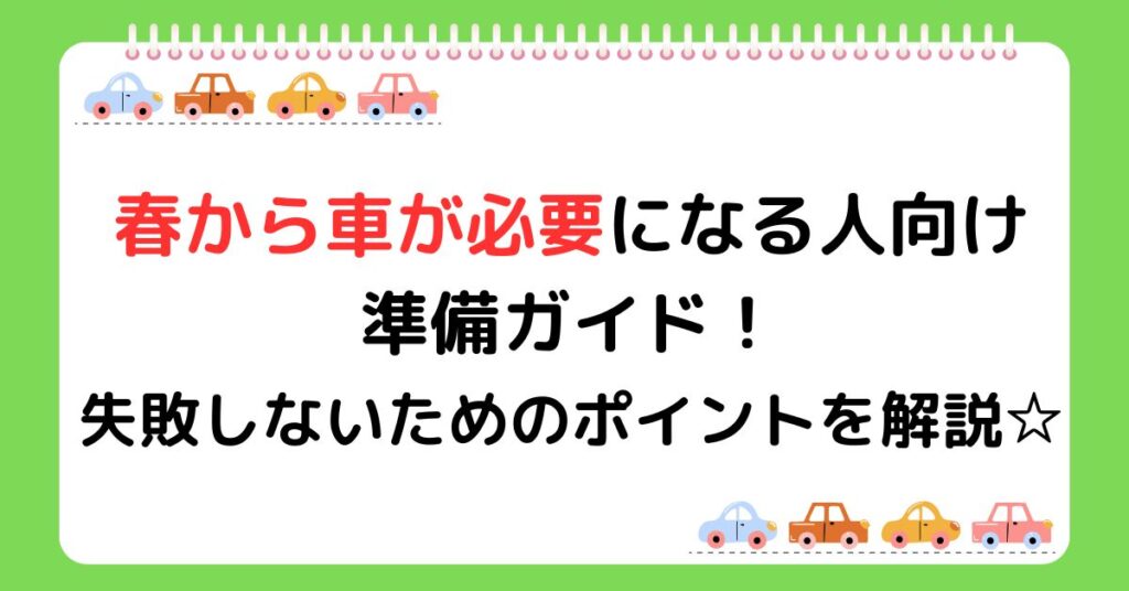 この記事では、春から車が必要になる人向けに、購入前にやっておくべき準備や注意点を分かりやすく解説します。最後まで読むことで、余裕を持って春を迎えるための車準備ができるようになります。