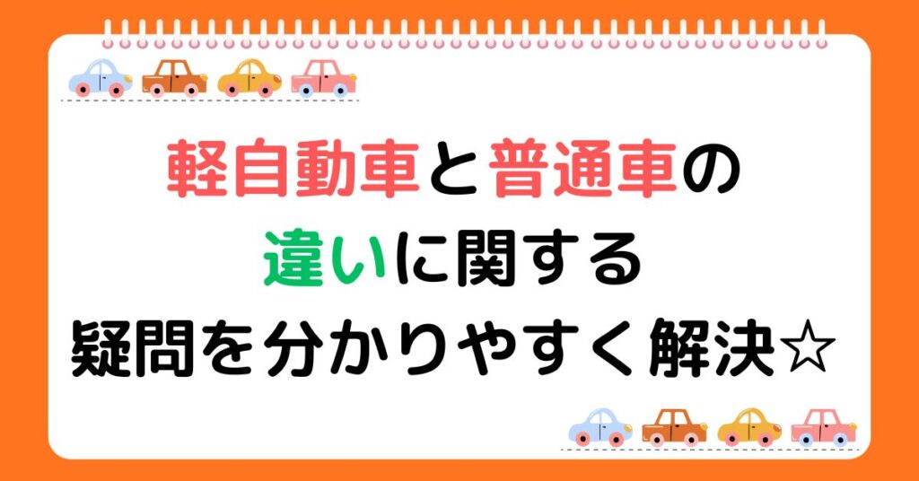 この記事では、軽自動車と普通車の違いに関するよくある疑問を分かりやすく解説します。最後まで読むことで、自分の生活スタイルに合った車がどちらなのか判断しやすくなります。